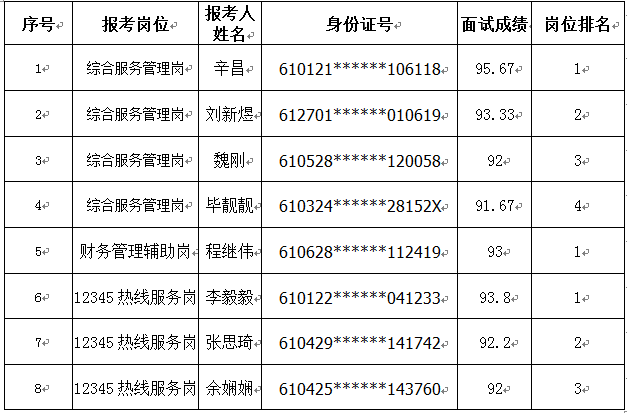 根据上海外服(陕西)人力资源服务有限公司招聘工作安排,面试工作定已于2020年7月11日结束。按照招聘工作要求,“12345热线服务岗”因参加面试人员不足招聘要求人数3:1,本次缩减计划招录比例。