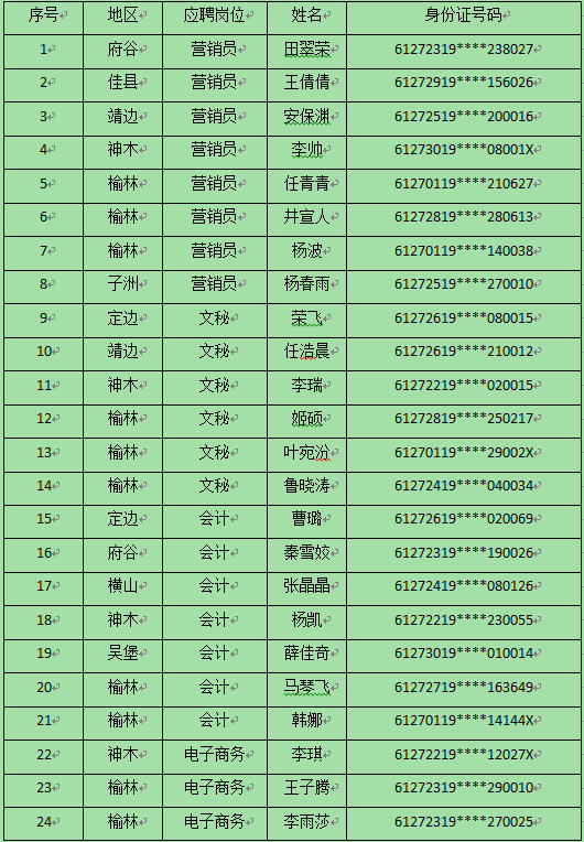 榆林市新华书店2020年度公开招聘体检工作已于2021年01月28日结束。根据招聘工作安排,现将拟录用人员名单公示如下:
